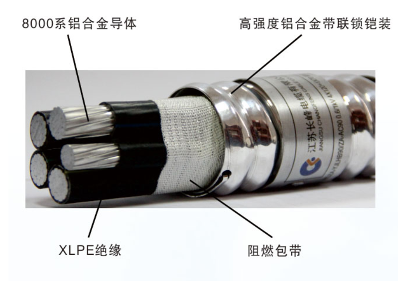 国内常用的铠装电缆,大多采用钢带铠装,安全级别低,在受到外界破坏力时,其抵御能力差,容易导致击穿,且重量重,安装成本相当高,加之耐腐蚀性能差,使用寿命不长。而使用铝合金联锁铠装电缆,其层与层之间的联锁结构,保证电缆能经受外界强大的破坏力,即使电缆遭受较大的压力和冲击力时,电缆亦不易被击穿,提高了安全性能。铝合金联锁铠装结构使电缆与外界隔离,提高了电缆的阻燃耐火级别,降低了火灾的危险系数。特别是使用联锁铠装合金电缆由于重量轻、柔软性好、弯曲半径小在安装中可以省去桥架或穿管,因而可以进一步节省材料和施工费用。