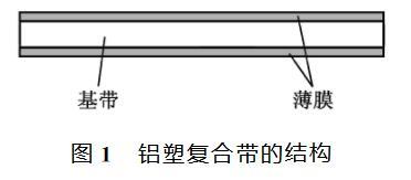 常见的质量问题 铝塑复合带是由铝基带及其表面贴覆的薄膜组成,其结构如图1所示。按不同的基带厚度铝塑复合带有多种规格,本文中将以基带厚度0. 2mm,总厚度0.3mm的铝塑复合带为例,对铝塑复合带的纵包控制技术进行探讨。 铝塑复合带的纵包过程就是通过一系列的模具将平板状的铝塑复合带变形为管
